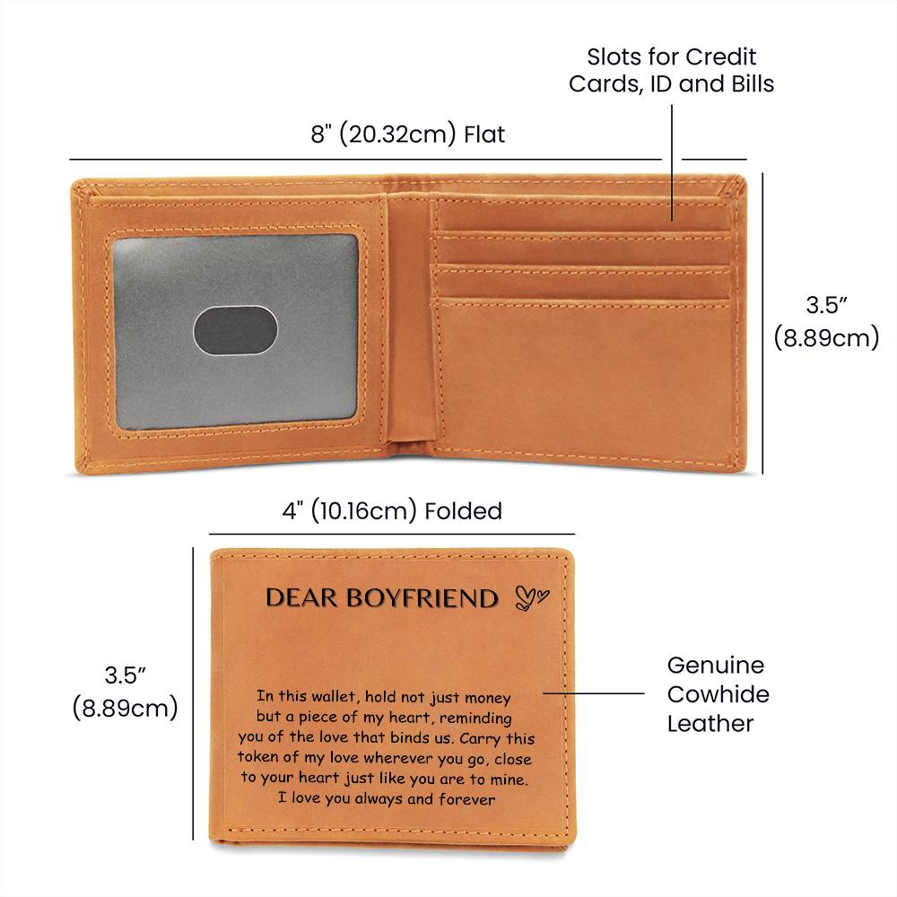 In this wallet, hold not just money but a piece of my heart, reminding you of the love that binds us. Carry this token of my love wherever you go, close to your heart just like you are to mine. I love you always and forever.