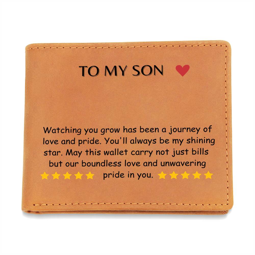 Watching you grow has been a journey of love and pride. You'll always be my shining star. May this wallet carry not just bills but our boundless love and unwavering pride in you.
