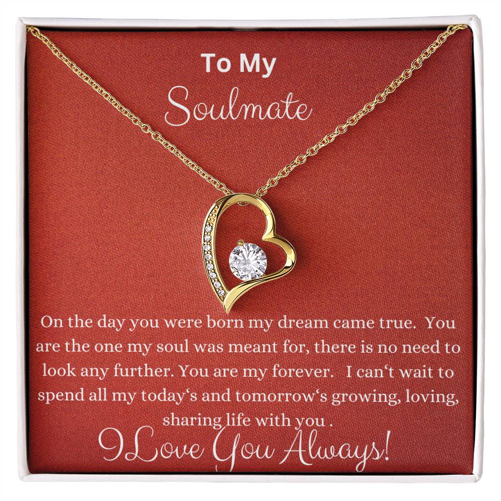 To My Soulmate: On the day you were born my dream came true. yu are the one my sould was meant for, there is no need to look any further. you are my forever. I can't wait to spend all my today's and tomorrow's growing, loving, sharing life with you. I Love You Always!