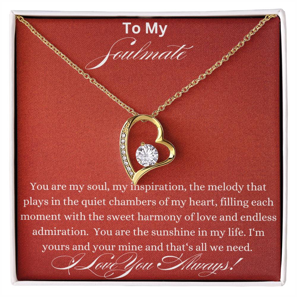 To My Soulmate: You are my soul, my inspiration, the melody that plays in the quiet chambers of my heart, filling each moment with the sweet harmony of love and endless admiration. You are the sunshine in my life. I'm yours and your mine and that's all we need. I Love You Always!