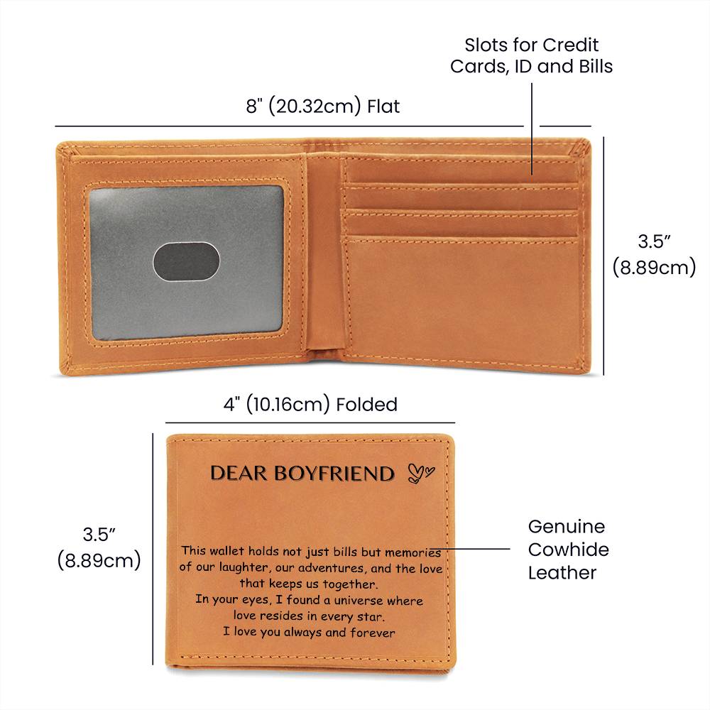 This wallet holds not just bills but memories. Our laughter, our adventures, and the love that keeps us together. In your eyes, I found a universe where love resides in every start. I love you always and forever.