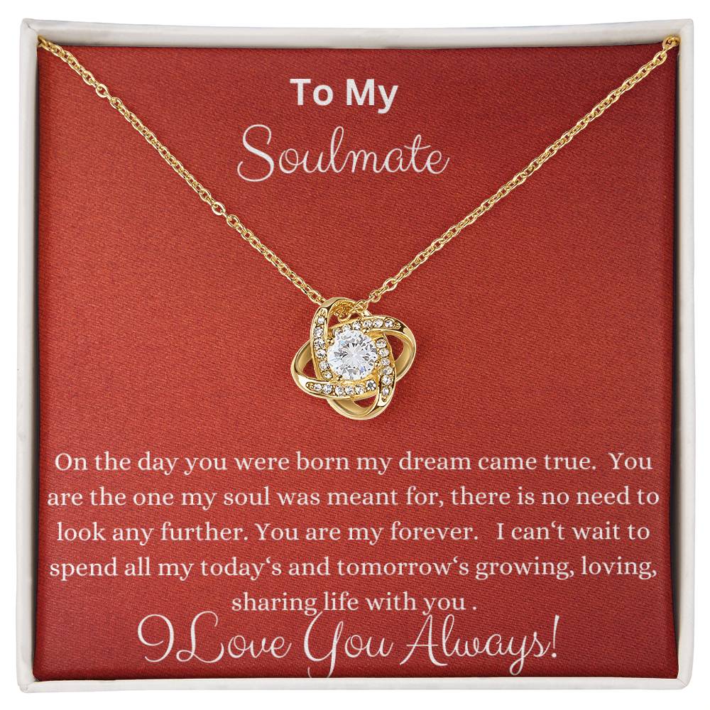 To My Soulmate: On the day you were born my dream came true. You aret he one my soul was meant for, there is no need to look any further. You are my forever. I can't wait to spend all my today's and tomorrow's growing, loving, sharing life with you. I Love You Always!