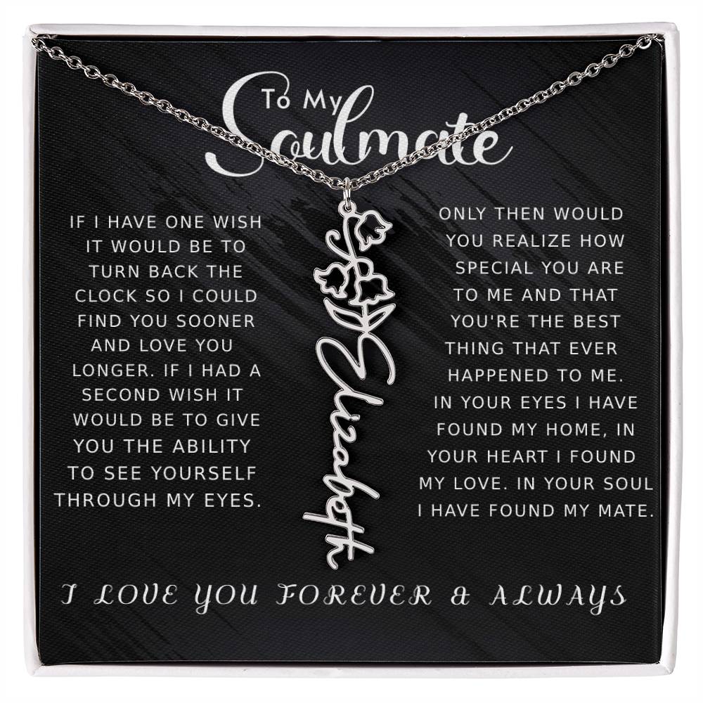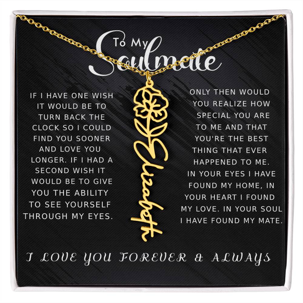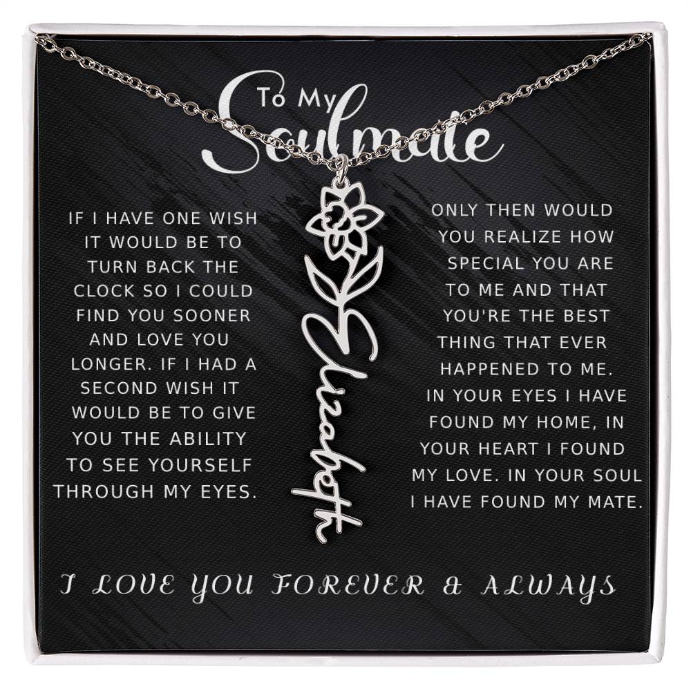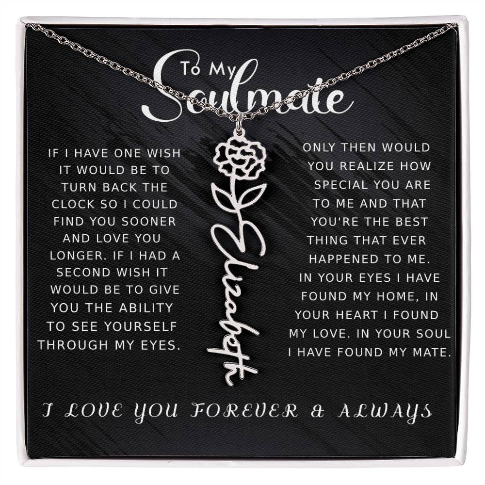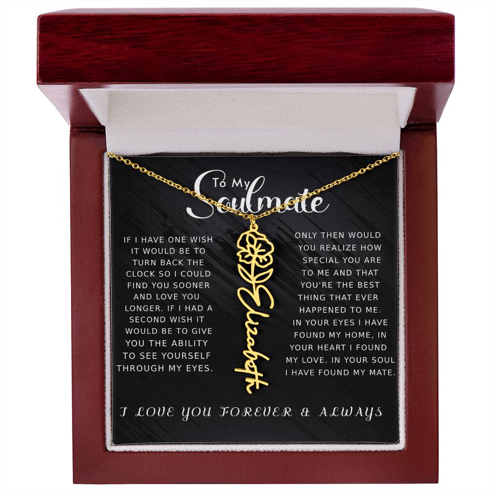 Introducing our Soulmate Floral Name Necklace – an exquisite blend of personalized elegance and timeless beauty. Crafted to celebrate individuality, this enchanting piece is more than just a necklace; it's a reflection of your unique style and the cherished bonds you hold dear.