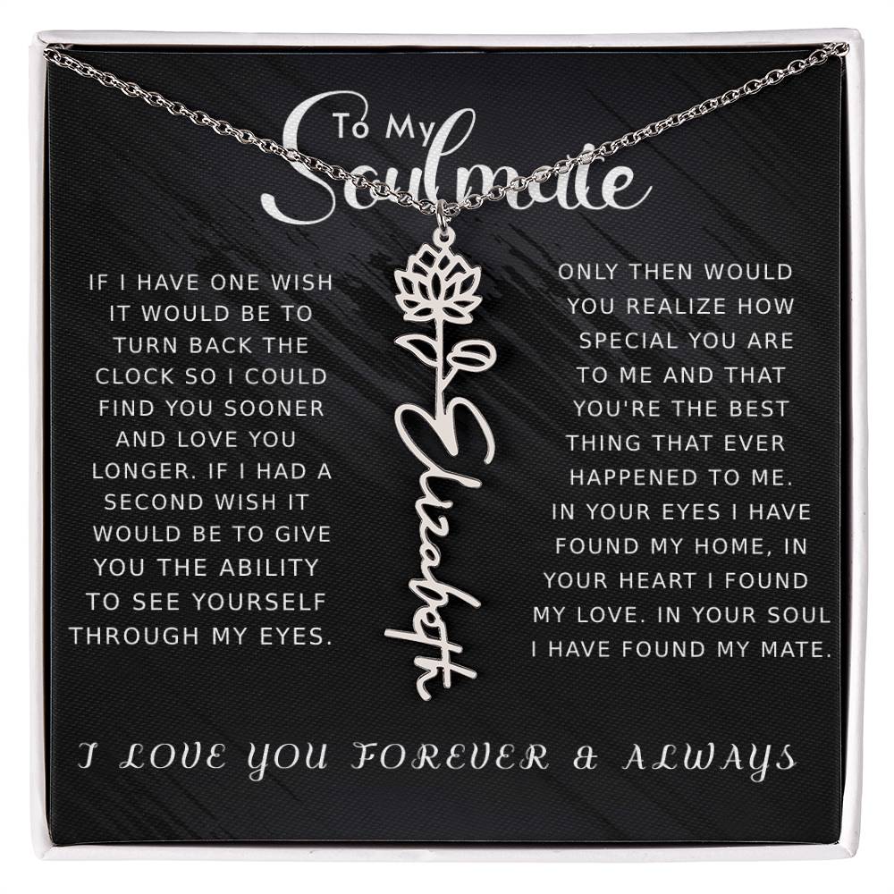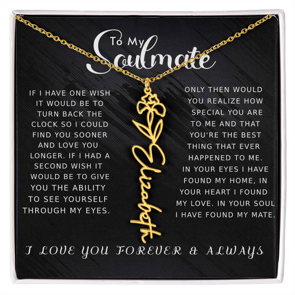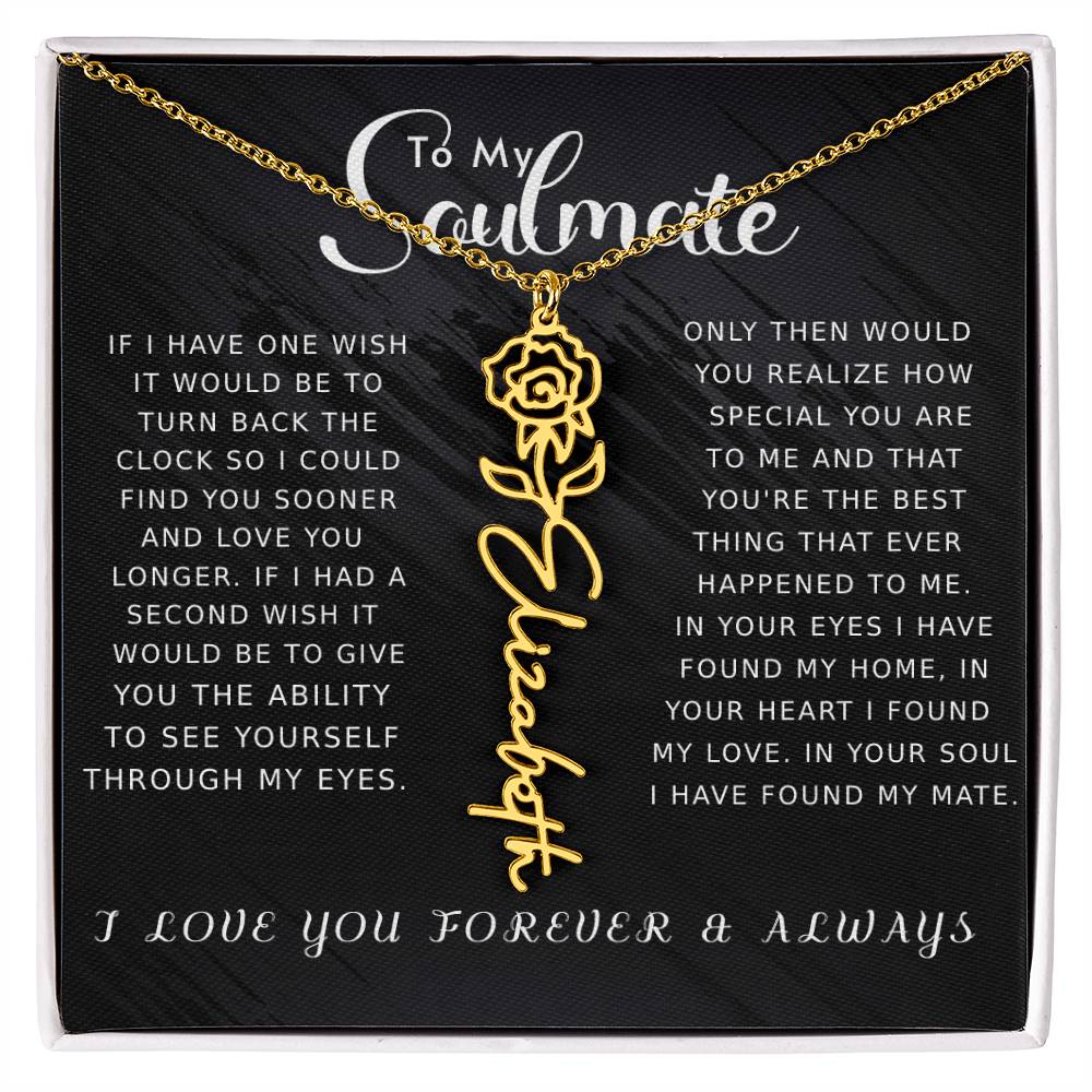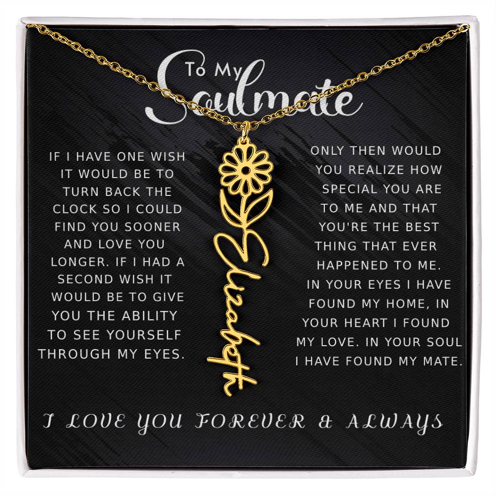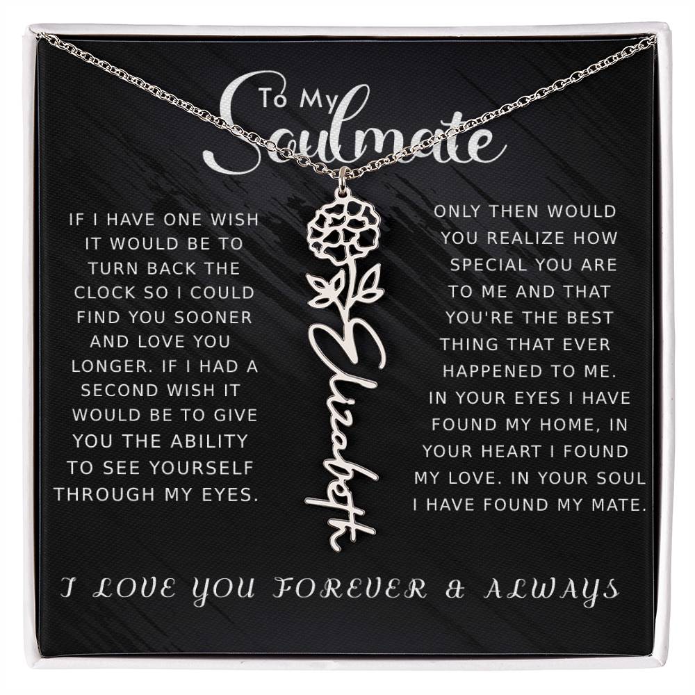 Introducing our Soulmate Floral Name Necklace – an exquisite blend of personalized elegance and timeless beauty. Crafted to celebrate individuality, this enchanting piece is more than just a necklace; it's a reflection of your unique style and the cherished bonds you hold dear.