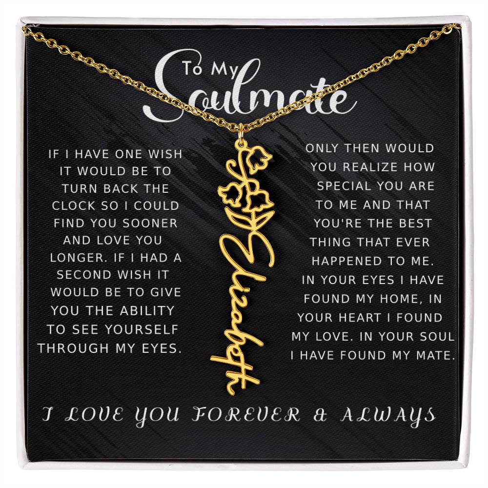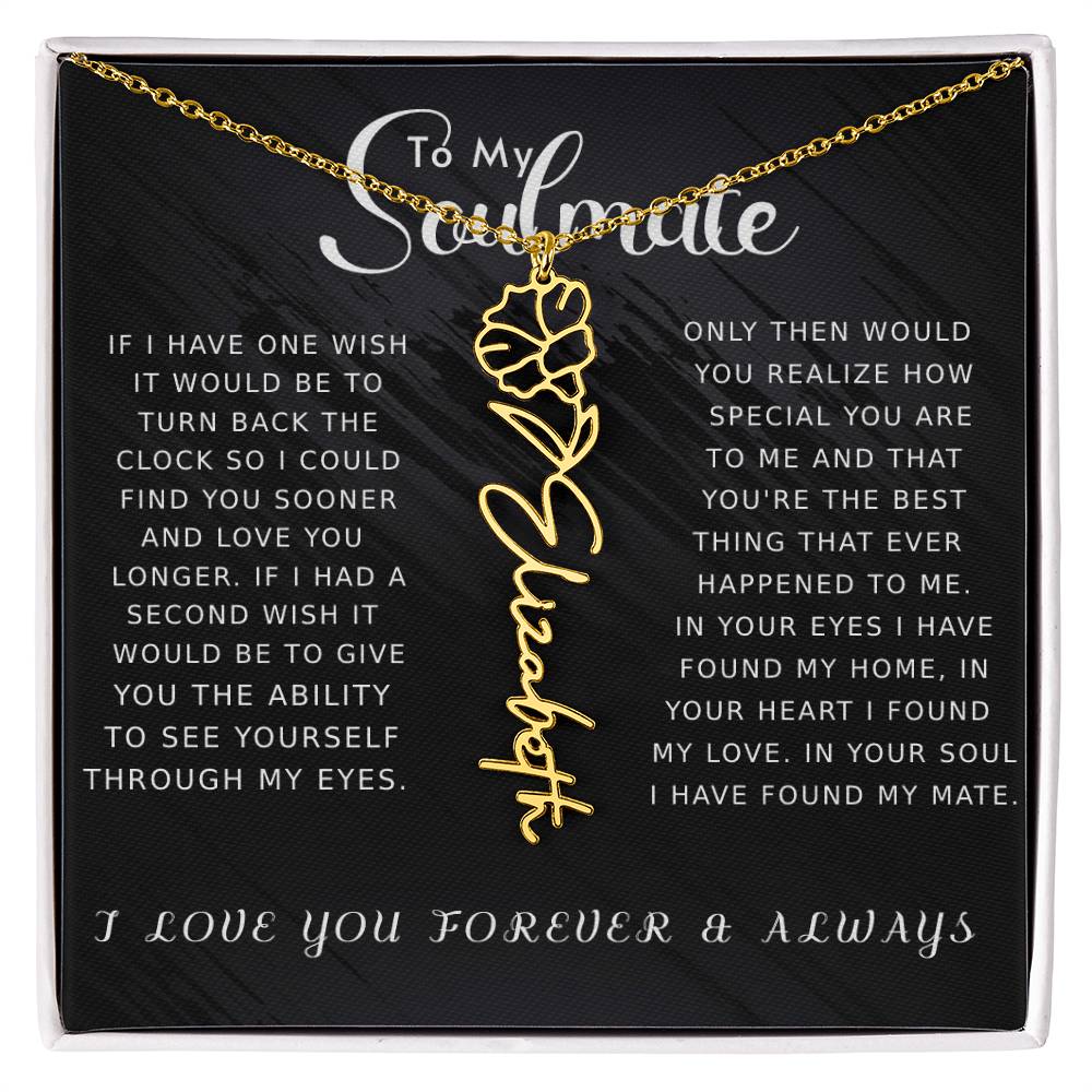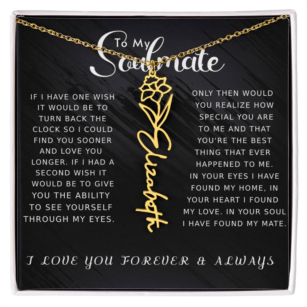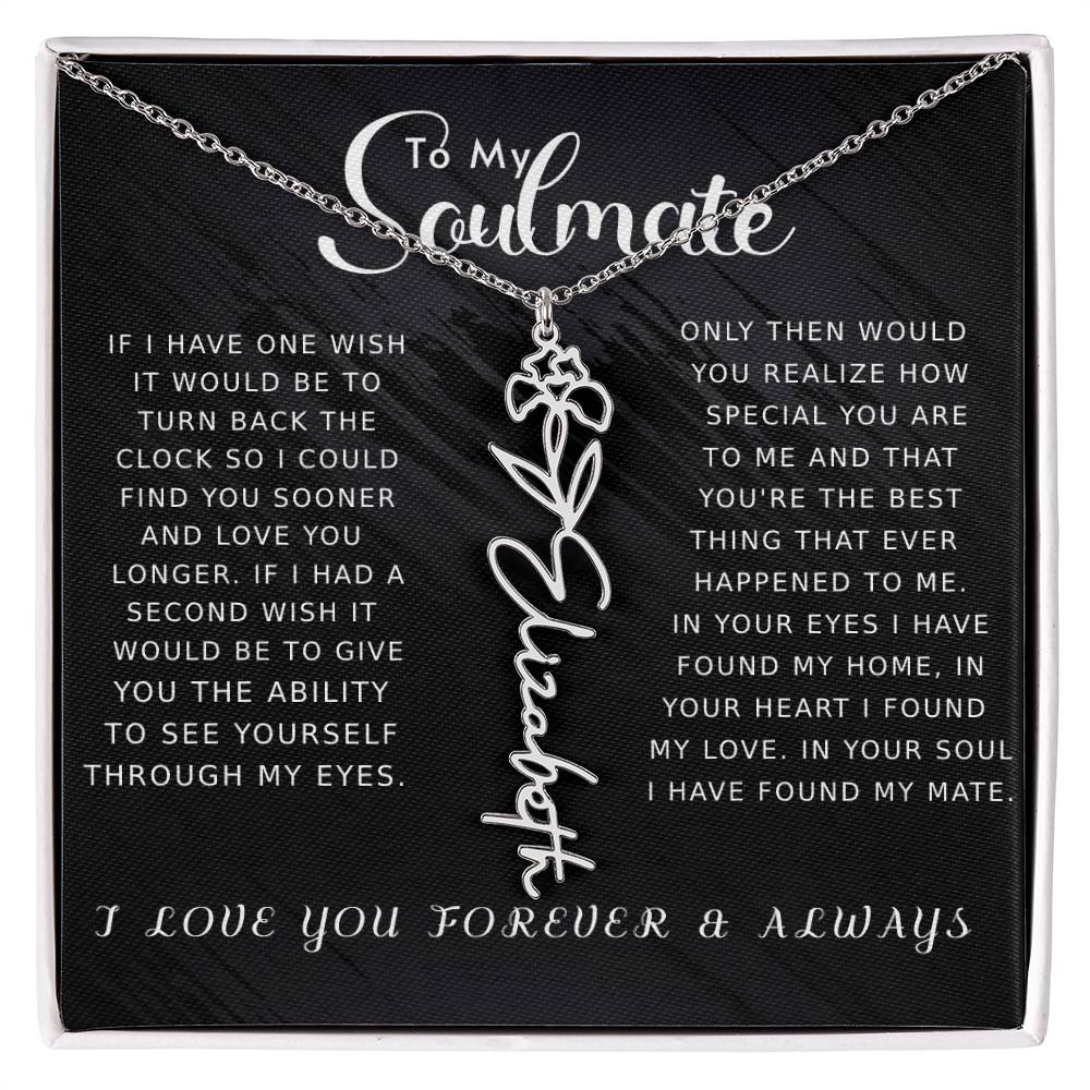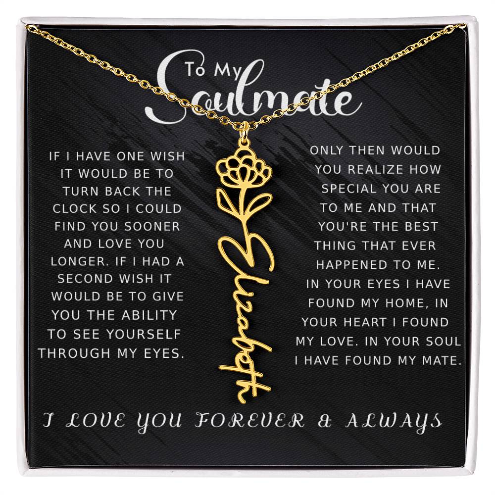 Introducing our Soulmate Floral Name Necklace – an exquisite blend of personalized elegance and timeless beauty. Crafted to celebrate individuality, this enchanting piece is more than just a necklace; it's a reflection of your unique style and the cherished bonds you hold dear.