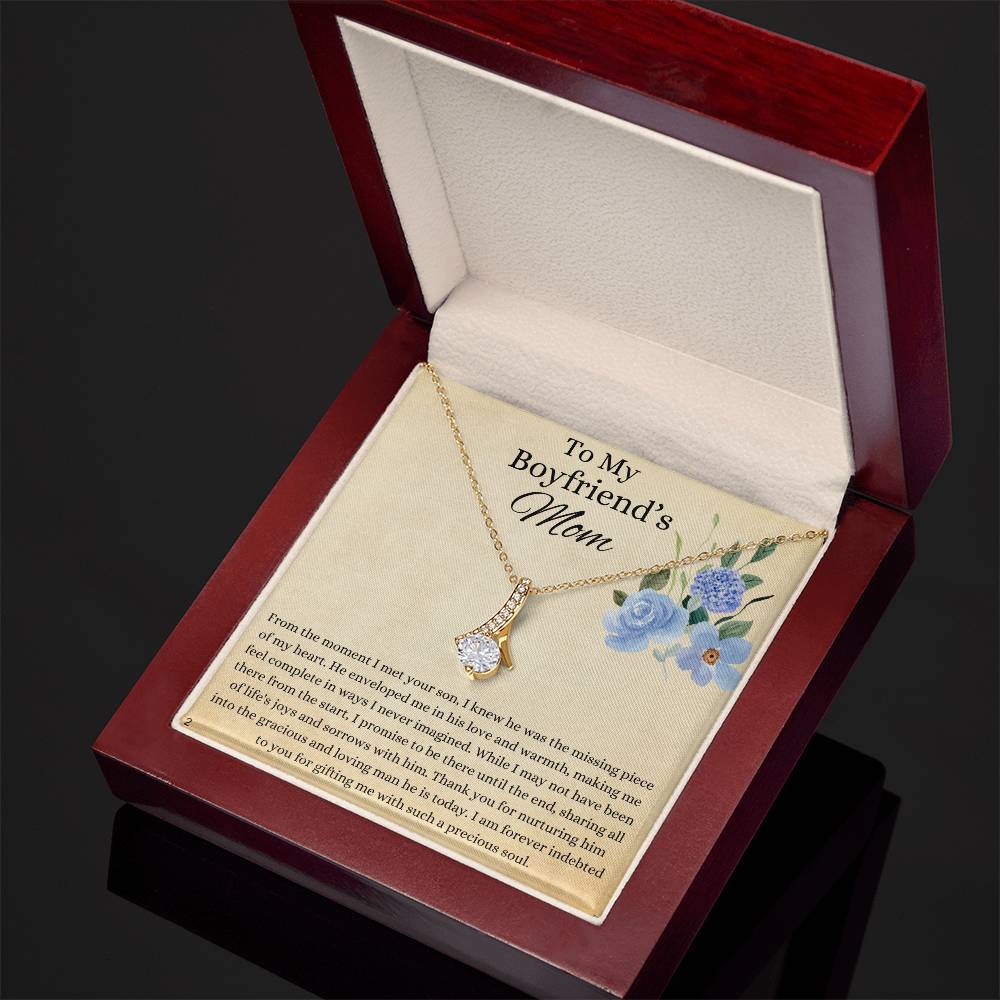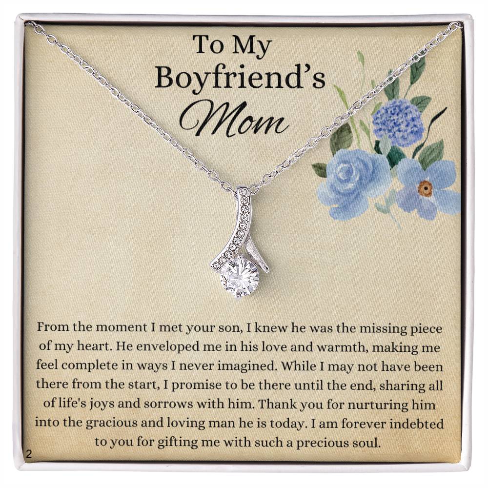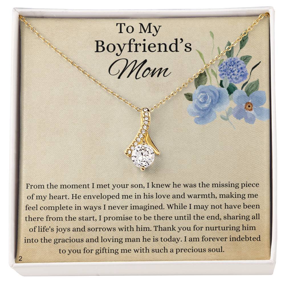 To My Boyfriend's Mom: From the moment I met yur son, I knew he was the missing piece of my heart. he enveloped me in his love and warmth, making me feel complete in ways I never imagined. while I may not have been there from the start, I promise to be there until the end, sharing all of life's joys and sorrows with him. Thank you for nurturing him into the gracious and loving man he is today. I am forever indebted to you for gifting me such a precious soul.