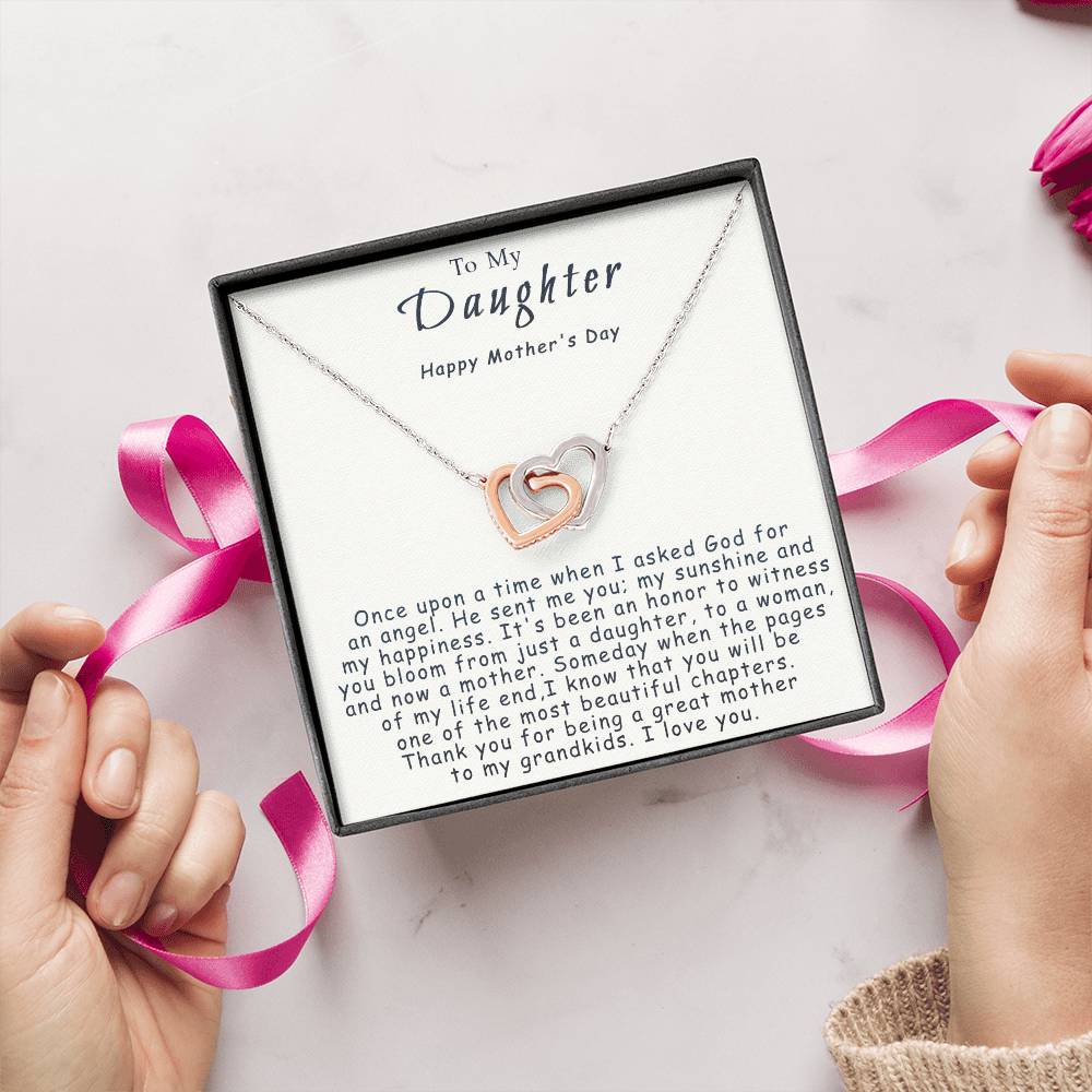 Adorned with two intertwining hearts, each representing the unwavering love shared between you and your daughter, this necklace is more than just jewelry; it's a tangible expression of cherished memories and shared moments.