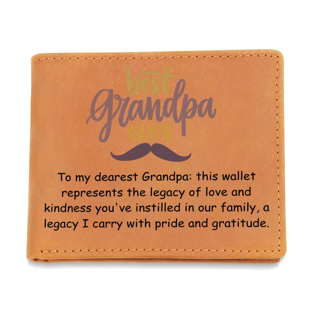 To my dearest Grandpa: this wallet represents the legacy of love and kindness you've instilled in our family. A legacy I carry with pride and grattitude.