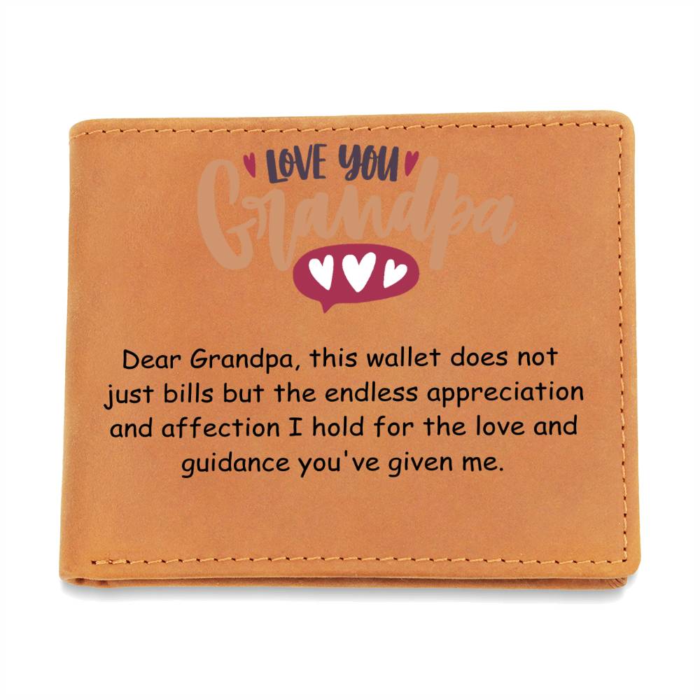 Dear Grandpa, this wallet does not hold just bills but the endless appreciation and affection I hold for the love and guidance you've given me.