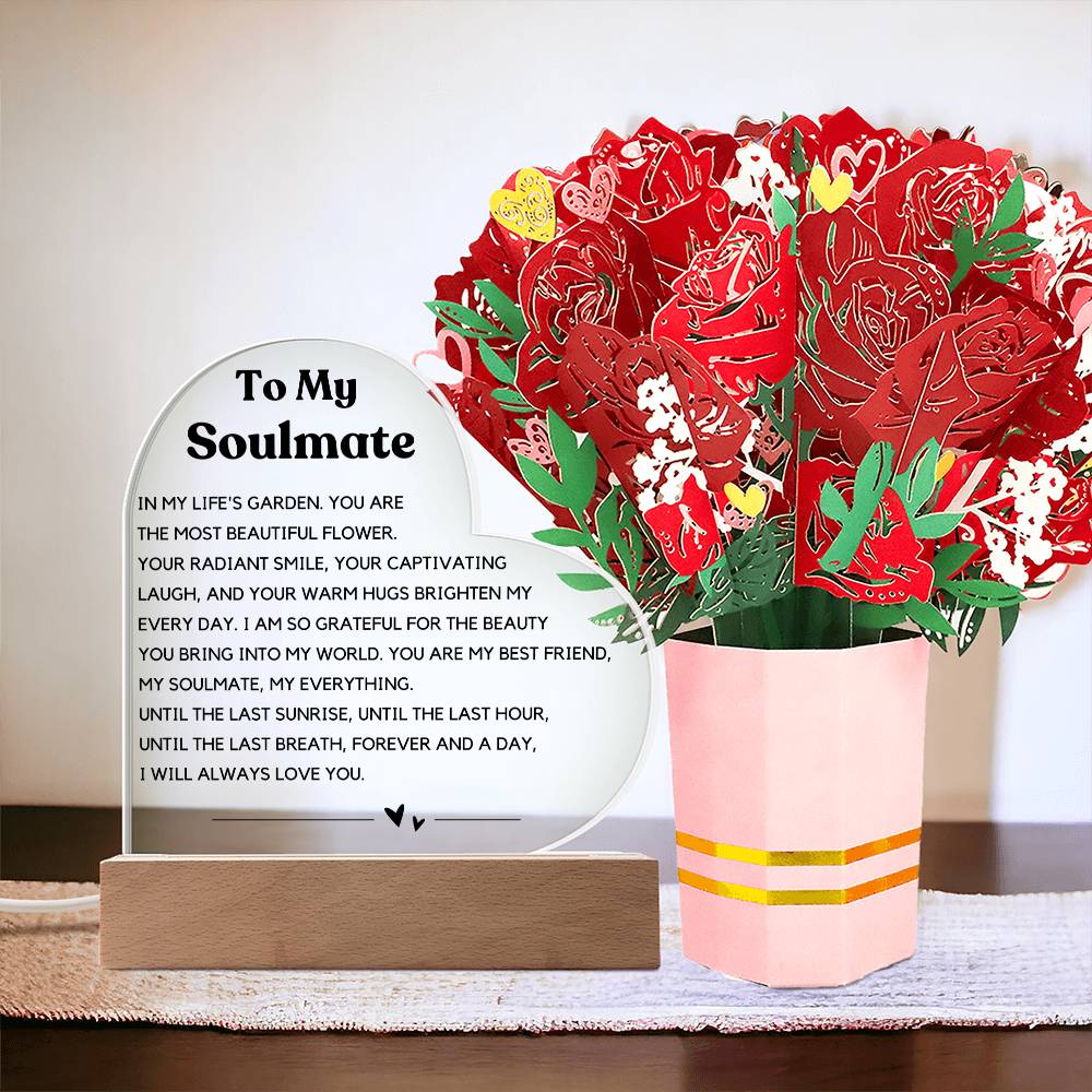 Soulmate - Printed Acrylic Heart w/ Flower Bouquet Bundle