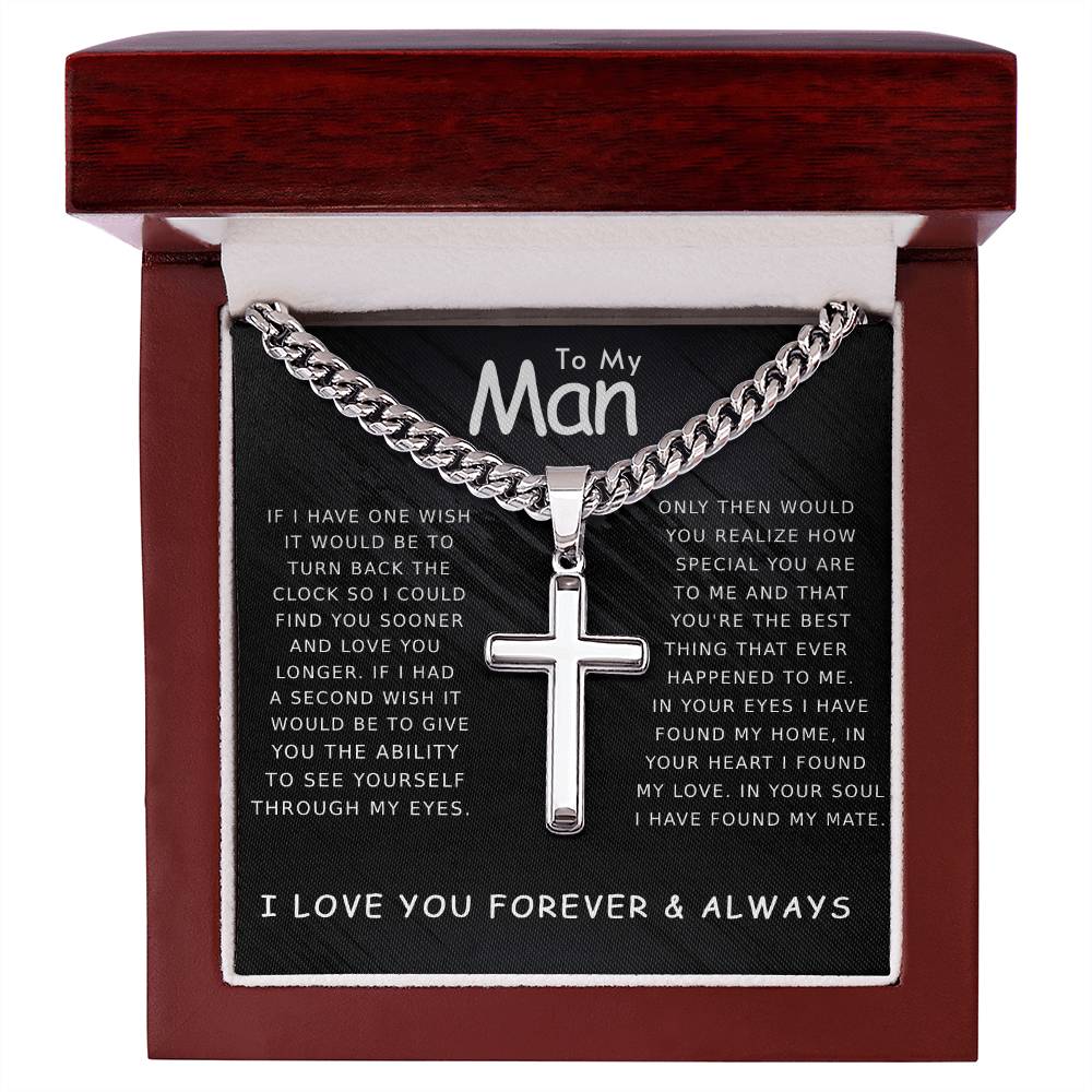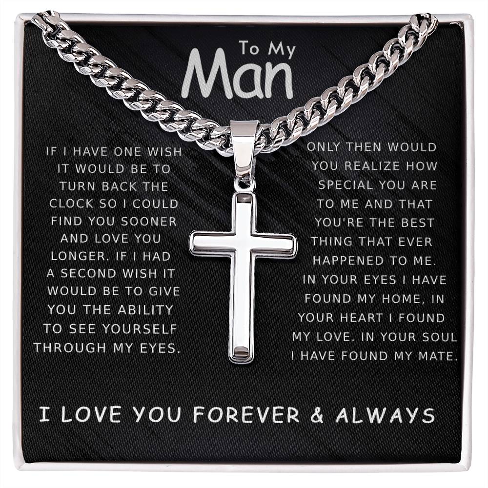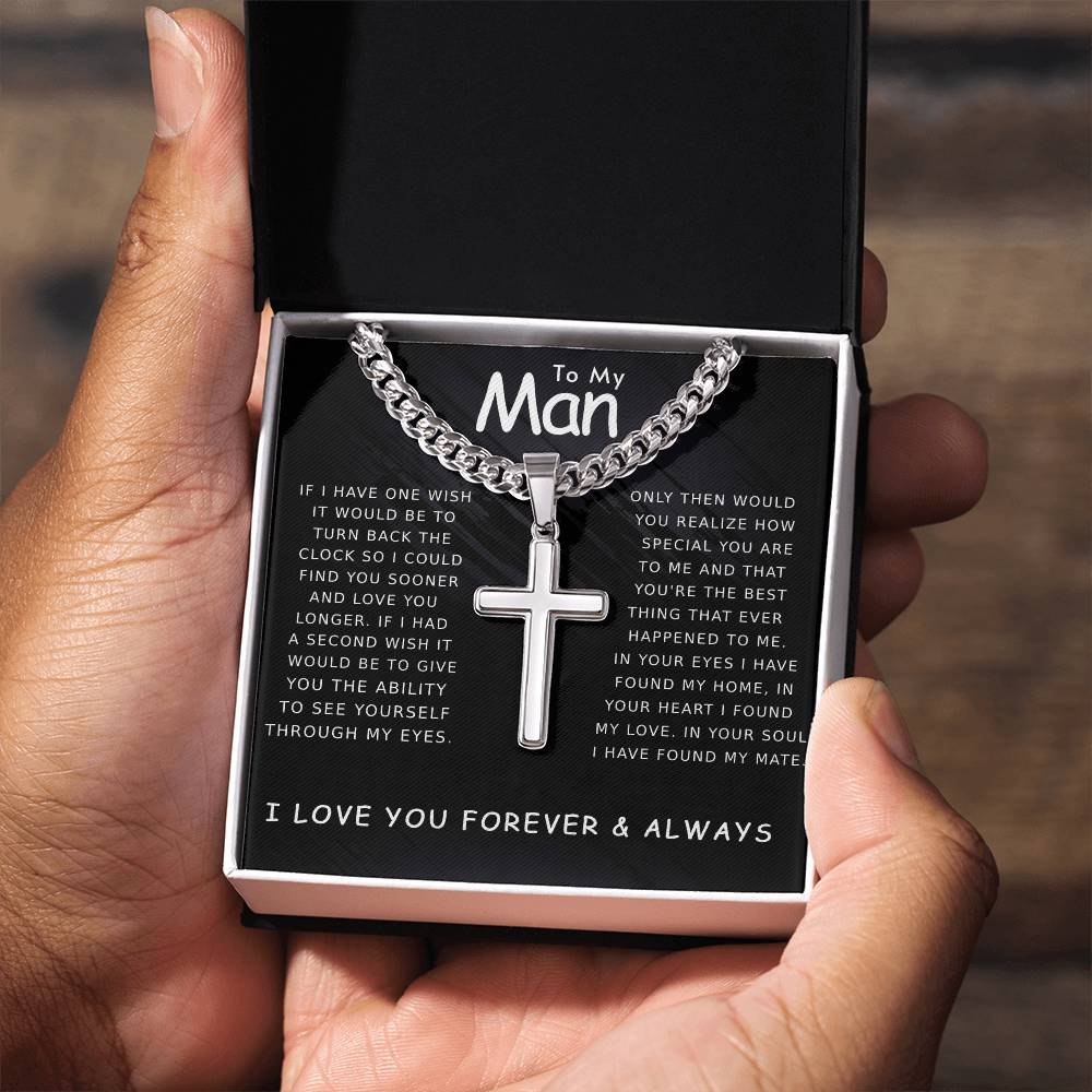 Valentine's Gift For My Man - Artisan Cross Necklace on Cuban Chain